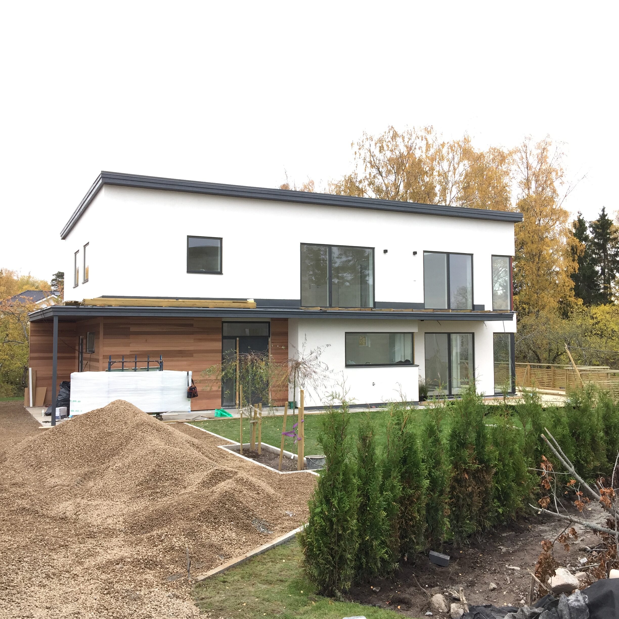 Nybyggt vitt stenhus med anlagd trädgård, Villa Sigtuna – Panton Construction