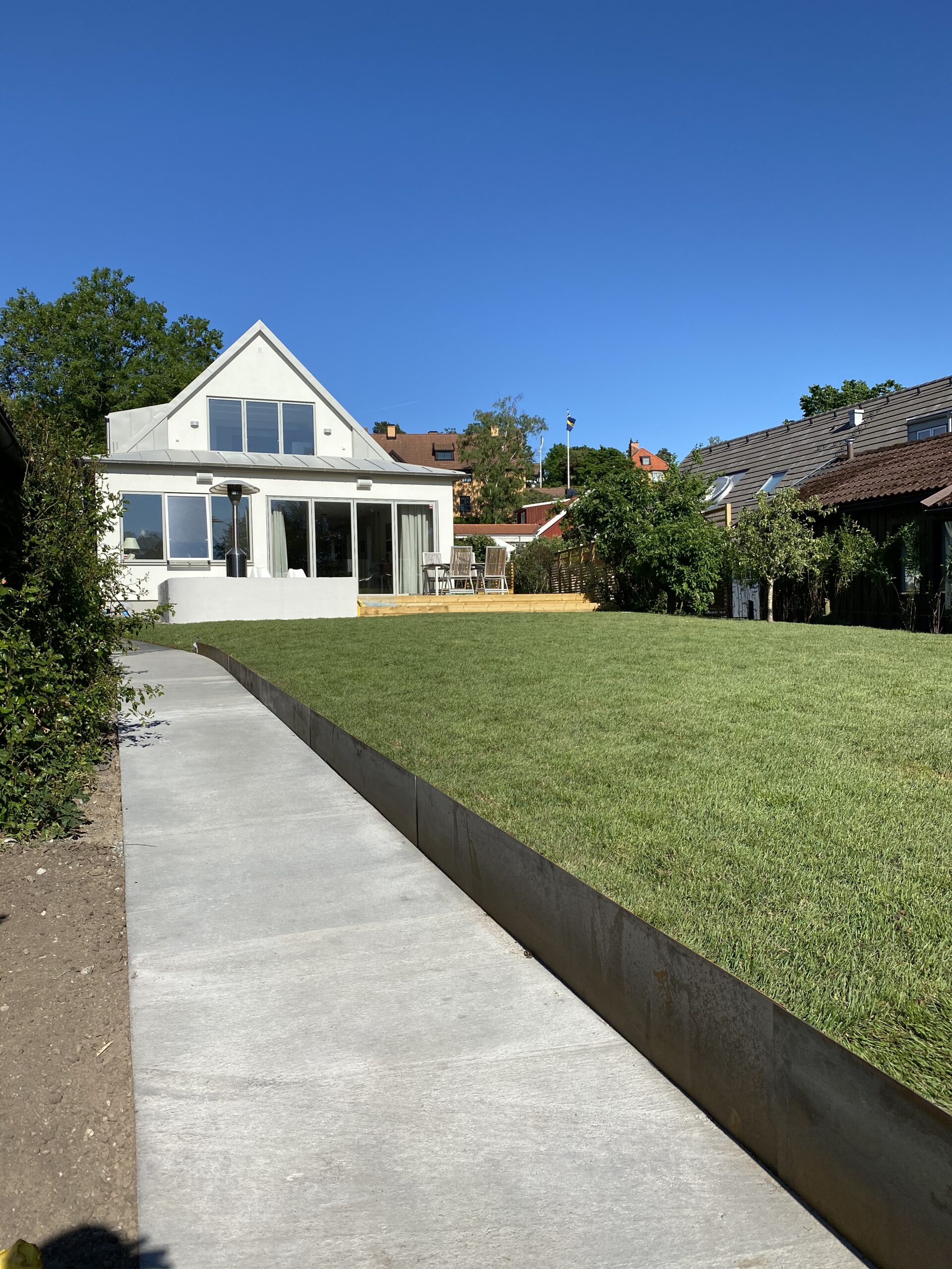 Renovering av fasaden, gjutning av murar, stenlagda gångar och anlagda uteplatser, Villa Islinge Lidingö – Panton Construction